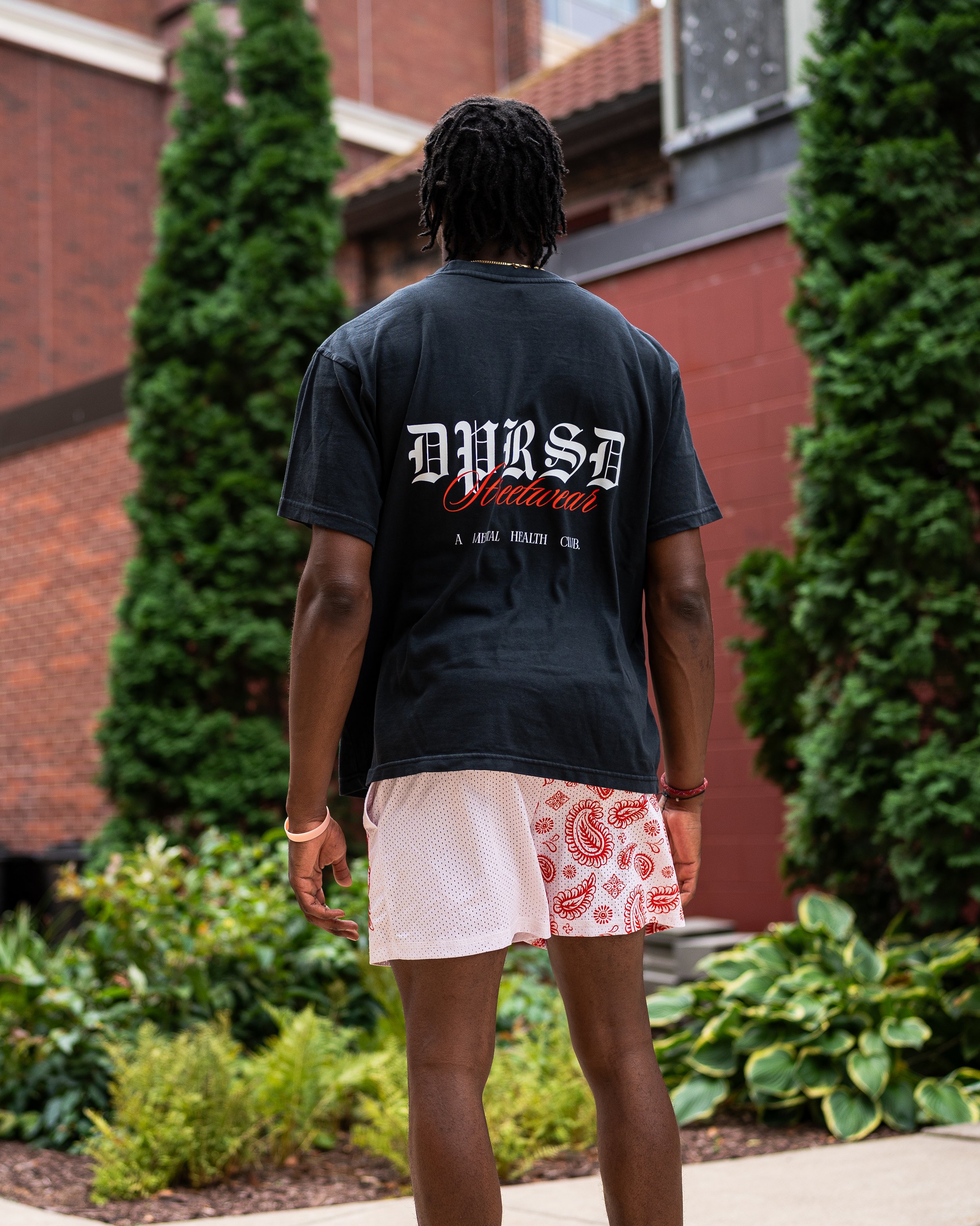 This design represents a general sense of darkness, containing a lot of sinister, mysterious elements, which are often felt when one is battling their own mind. at the bottom of the back design, there is a couple of lines from a poem featured in Mack’s book, Growing Up Depressed.